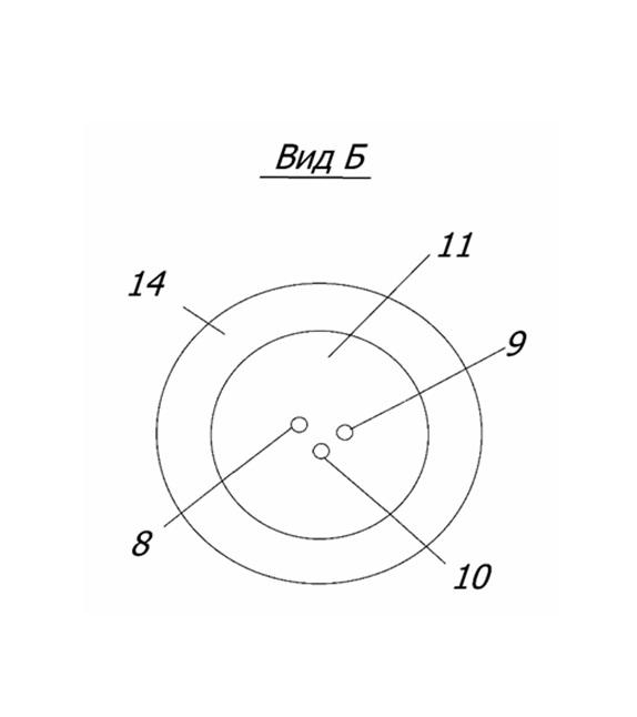На фиг. 3 представлен Вид Б. Выход из вихревых каналов.