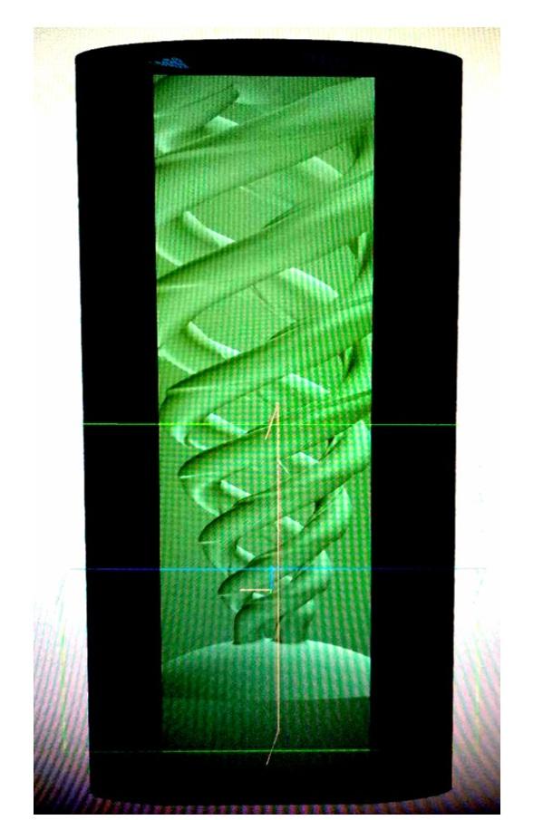 На фиг. 7 показана фотография трёх вихревых каналов, соединенных с общей расширительной камерой. Фотография сделана камерой смартфона Samsung s22 ultra, посредством программы: Компас 3d v23. Для изготовления вихревого кавитатора применили принтер: Phrozen, модель - sonicmega 8k.